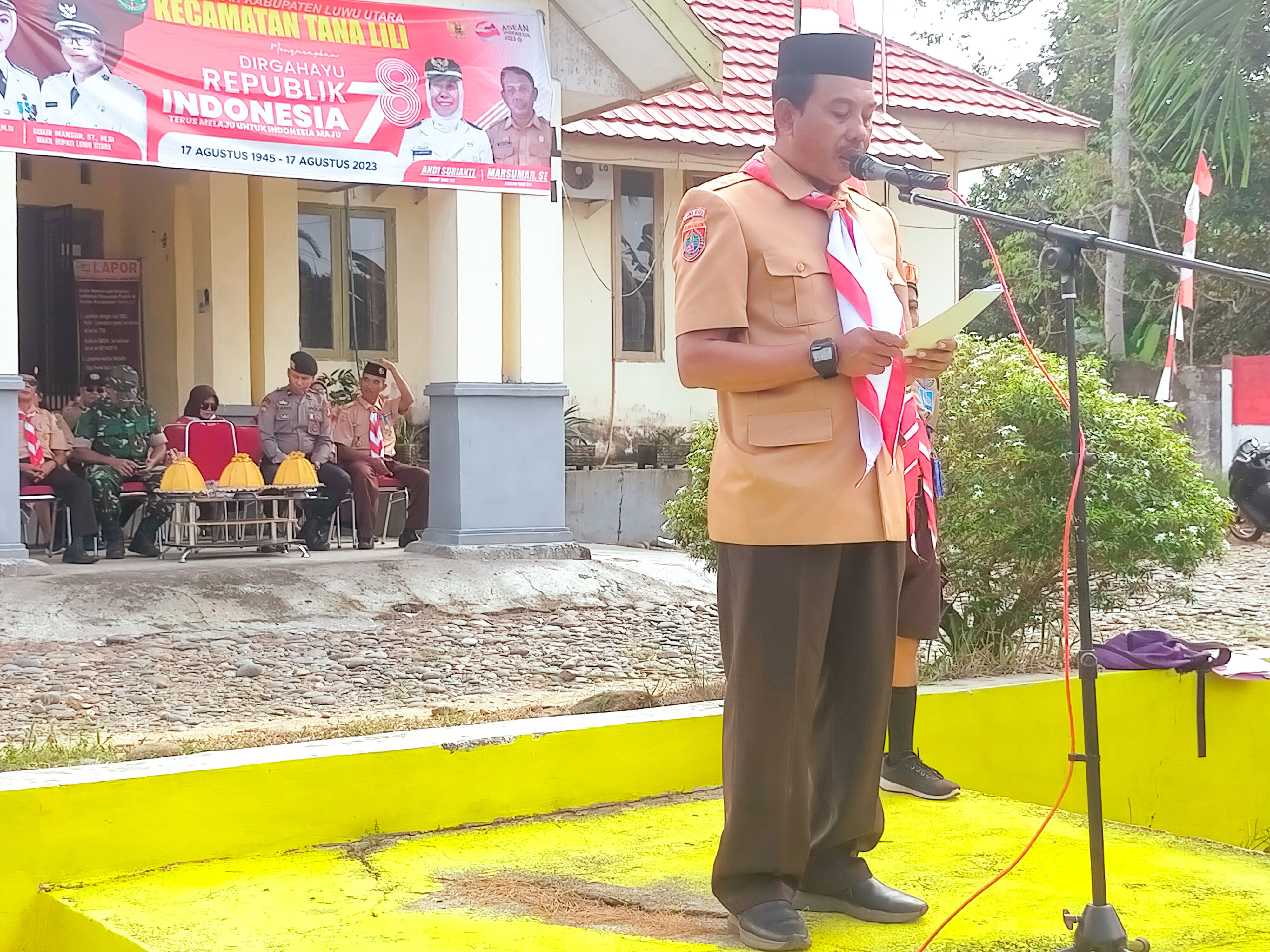Upacara Bendera Merah Putih digelar oleh kecamatan Tana Lili Kabupaten Luwu Utara di Lapangan Sandan